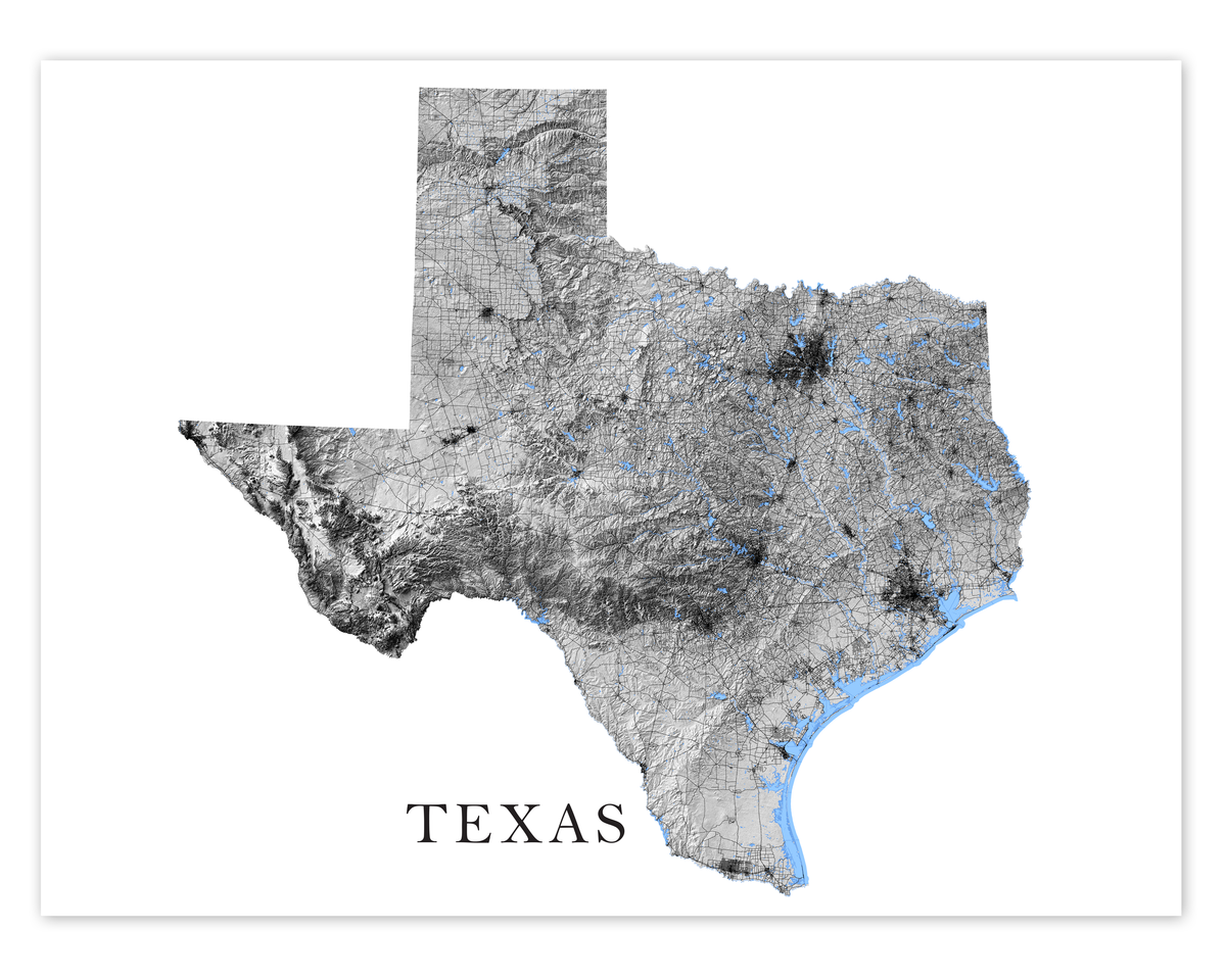 Texas Map Print Poster Black and White Texas Wall Art Prints, TX