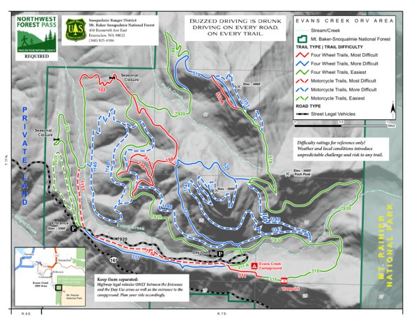 Evans Creek ORV Area Mount Baker Snoqualmie National Forest Map