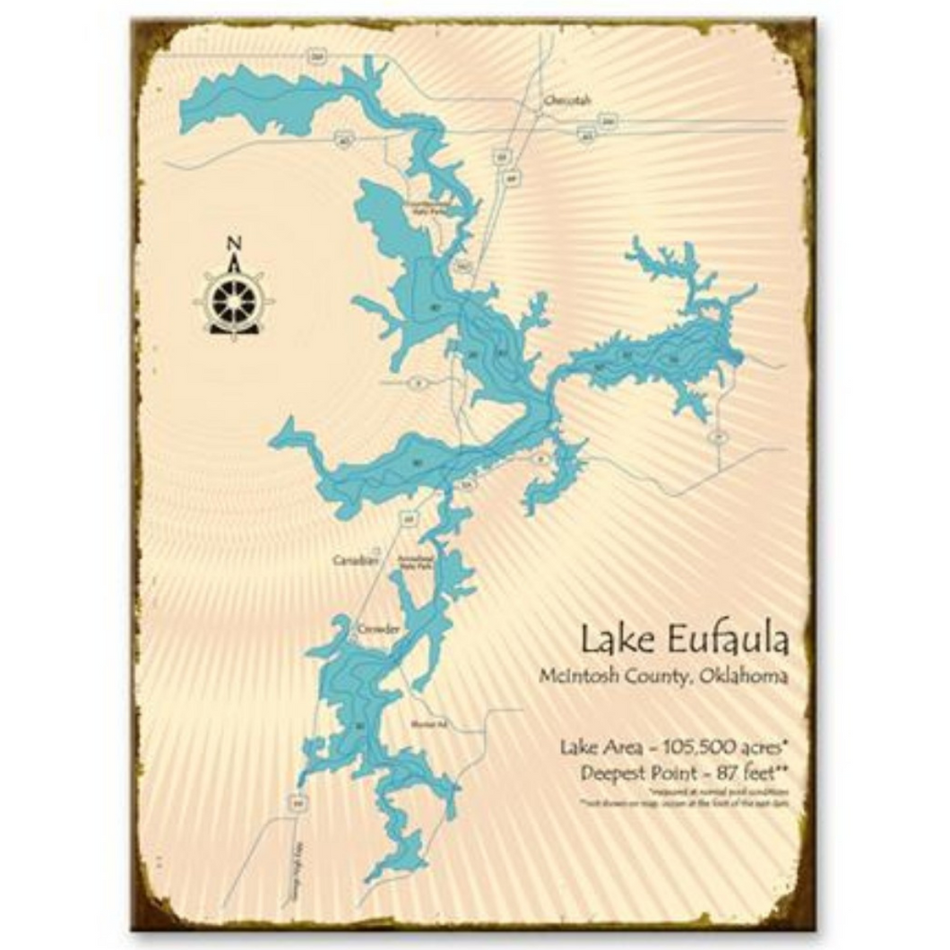 Lake Eufaula Map Vintage Sign | Lake Art Signs โ Lakehouse Outfitters